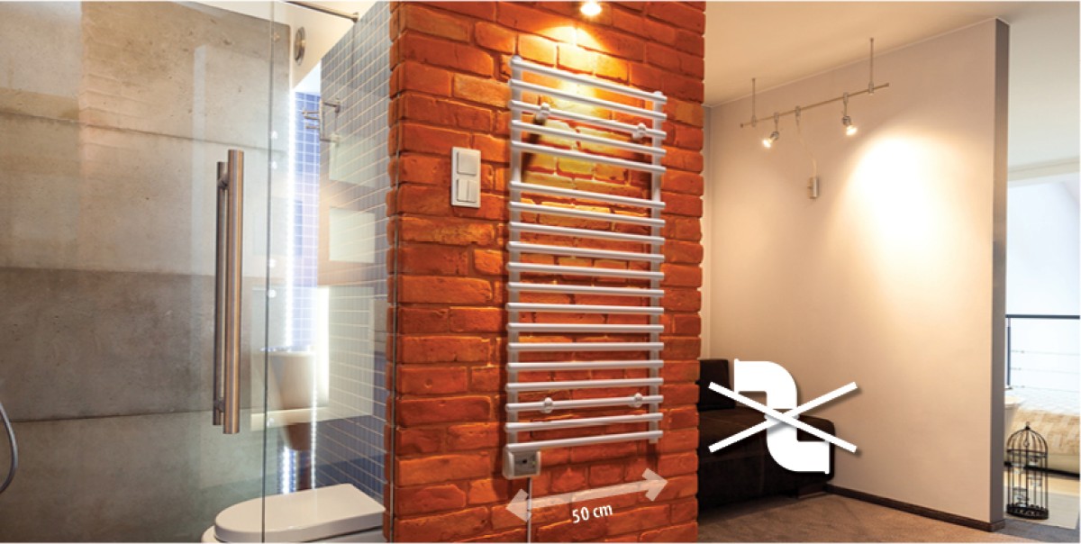 Elektrikli havlu radyatör sadece dikey şekilde duvara takılarak çalıştırılmak üzere tasarlanmıştır.